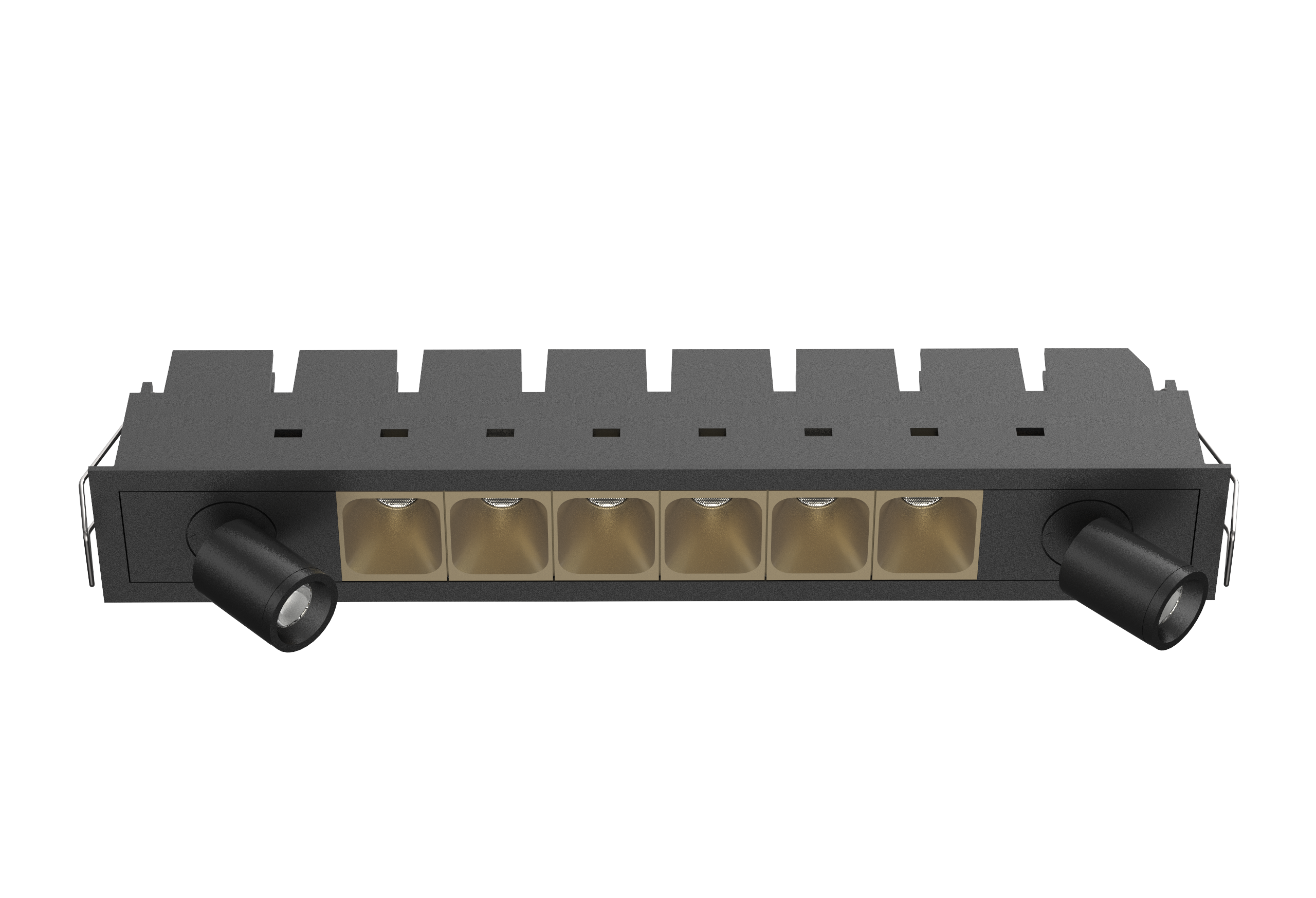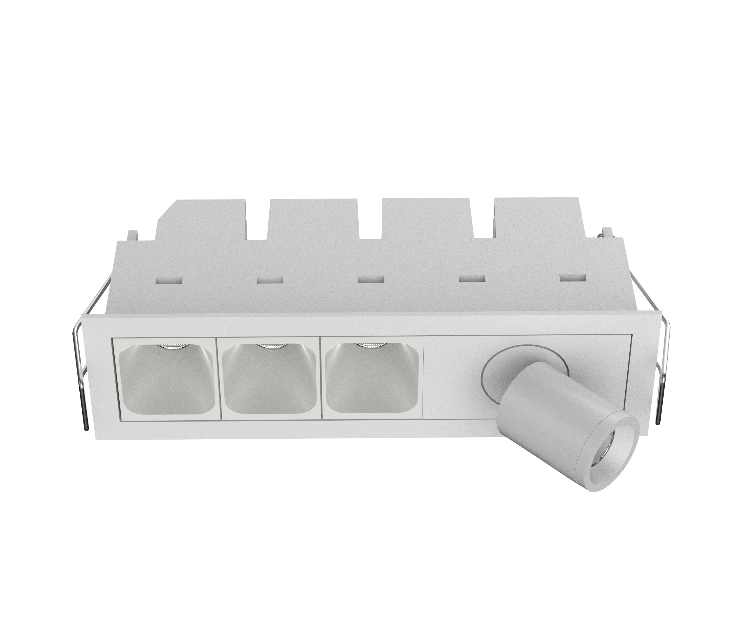 For added functionality, it can be equipped with two compact spotlights for precise, directional illumination—ideal for combining ambient and accent lighting in one sleek unit.